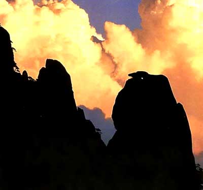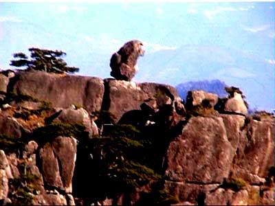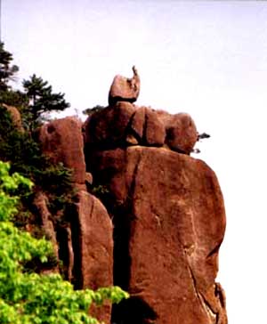 猴子观海位于狮子峰前,一石猴独踞峰顶,仿佛极目远望,又似纵身跳跃静观云海起伏,当云海散去时,猴子又可观望太平县的田园风光,因此这一巧石又可称“猴子望太平”。