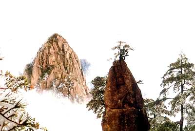 松鼠跳天都为耕云峰上一巧石,酷似活泼逗人的小松鼠,拖着尾巴,想越过万丈巨壑,跃上高耸云霄的天都峰,故名。