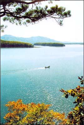 松花湖风景区的主体是水、林、山。 松花湖的美,美在水旷:百里湖区碧波荡漾,白帆点点宽处洇波浩淼,万顷一碧;窄处两面巨石,倒影如黑。周围山环水绕,因而多数时候湖面风平浪静,山