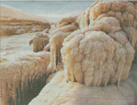 黄河,这条万古奔流,绵亘千里的大河,在偏关老牛湾撞开了山西省的大门,然后转而奔流向南,好似一把利剑把秦晋高原一劈两半,豁开一道深邃的峡谷。250米的河谷变成30米,于是就在临汾地区吉县这块中华民族发祥地之一形成了壶口瀑布这“收来一曲水,放出半天云。浪花喷五色,湍势吼千牛”,“听之若雷霆之鸣,望之若虹霓之射”的自然景观。怒泻的水如惊雷滚动,回响方圆5公里之外。 滔滔黄河,奔流到此,河道急剧变窄,这时河水奔腾怒啸,跌落约30米高的深潭中,山鸣谷应,形若巨壶沸腾,故名“壶口瀑布”。在冬季枯水期,秒流量最少时仅150~300立方米,这时河面冰封,细流涓涓,给人以俊美之感。一旦4月初冰河解冻,秒流量骤增1000立方米以上,最高时达8000立方米,这时巨大的瀑布、河水夹着冰块冲击而下,如狮吼虎啸,震天动地,景象极为壮观。到夏季,秒流量在1000~2000立方米,这时由于下游水位下降,落差加大,水柱冲天,浪花