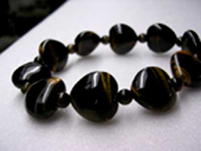 虎眼石特质被印度人视为最尊贵象征的圣石,矿石为页岩,因此有着因排列整齐的结晶,进而反射出如猫眼般的璀璨光芒,一般为黑黄相间的色调,像老虎的纹路,也有蓝黄黑相间的,称为蓝色猫眼石。