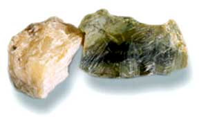 蛇纹石 蛇纹石的化学组成是Mg6(Si4O10)OH2,是一族层状结构的硅酸盐矿物的总称。单体少见,多呈致密块状、层状或纤维状集合体。具有各种色调的绿色、浅*,常呈似蛇皮的绿黑相间的花纹,故称蛇纹石。条痕白色,块状蛇纹石呈油脂光泽或蜡状光泽,纤维状石膏具丝绢光泽。摩氏硬度2.5~3.5,比重2.5~2.65。稍具滑感。 蛇纹石的纤维状变种称温石棉,为石棉的一种,具典型的丝绢光泽,富挠性。 蛇纹石主要是超基性岩或镁质碳酸岩中的富镁的矿物经热液交代变质而成。蛇纹石可作为耐火材料和生产钙镁磷肥的原料。绿色不透明者称岫玉,因辽宁岫岩县出产而得名,是著名的玉石。