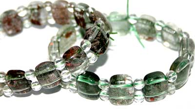 绿幽灵 绿幽灵Green-Phantom - 化学式(SiO2)。绿幽灵包含绿色火山泥灰等内涵物,因而在通透的白水晶里,浮现如云雾、水草、漩涡甚至金字塔等天然异象。至今没有任何学者、专家能解释,为何水晶内会出现一个完整的、和古埃及金字塔一模一样的金字塔?一重重整齐的绿色影子,其实就是地质改变的日记!