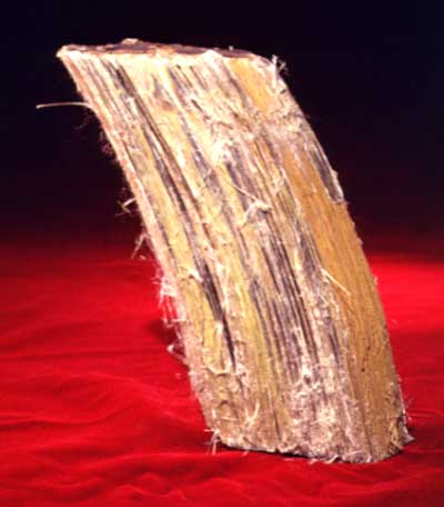 石棉 石棉是天然纤维状矿物的集合体,可劈分成细而柔韧的纤维。按成分和结构的差异一般将石棉分为温石棉(也称蛇纹石石棉)、角闪石石棉(碱性角闪石石棉也统称蓝石棉)、水镁石石棉等。其中,温石棉产量最大,分布最广,占总产量98%以上;角闪石石棉、水镁石石棉产量小。本文重点介绍温石棉矿物原料。