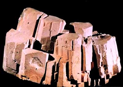 正长石单斜晶系,晶体常呈短柱状或厚板状。肉红色、浅黄红色,玻璃光泽,硬度6~6.5。正长石主要产于酸性、碱性和一部分中性火成岩中,如花岗岩、正长岩。也产于各种片麻岩和混合岩中,沉积岩中亦有分布。