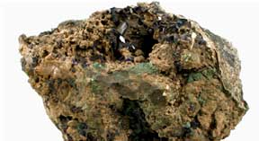 蓝铜矿 蓝铜矿化学组成Cu3(CO3)2(OH)2,CuO2 69.24%,CO2 25.53%,H2O 5.23%;鉴定特征蓝铜矿最大的特点,是作天蓝色、条痕淡蓝色;可溶于盐酸,溶液作蓝色,并产生气泡。其他试验监定的方法,和孔雀石相同;与孔雀石相似,是含铜硫化物矿床氧化带中的风化产物,系含铜硫化物氧化所产生的易溶硫酸铜与方解石相互作用而成,或者与含碳酸水溶液作用的结果。而且蓝铜矿和孔雀石之间可以相互转变。
