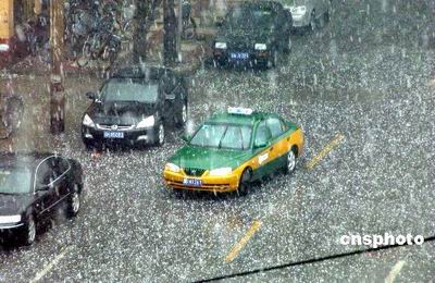 图一:2005年5月31日下午,遭受冰雹袭击的汽车