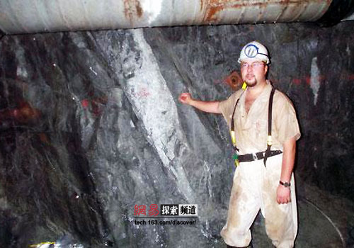 (Duane Moser站在南非金矿地下2800米的地方,不依赖太阳的生物体就是在这里被科学家发现。)