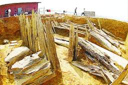 墓室中的木头露了出来。本报记者 摄