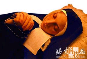 本报曾在2004年以图片新闻的形式简要报道过《法国“圣女”百年不朽》,如今,“不朽的圣女”的传奇有了新的进展,6月22日,一个由法国、英国、意大利和美国科学家组成的联合调查团前往法国,以探寻其尸体126年仍然保持得如生前之谜,7月20日,根据科学家们公布的报告,初步认定和遗体的“皂化”有关。有科学家甚至断言,遗体经过人工修复,可能身体的大部分和蜡像馆的蜡像“没有区别”。