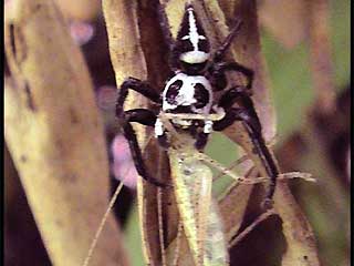 有趣的是,这一捕食者,也就是跳蛛,还常常成为许多其他种类飞虫和蝴蝶伪装的外衣。然而令人感到讽刺的是,一些跳蛛自己却伪装成蚂蚁以避免被吃掉。