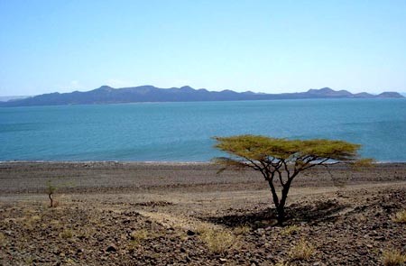 图尔卡纳湖同样是东非裂谷带上许多湖泊中的一个。湖区呈条带状,南北伸延256公里,向北一直抵达到埃塞俄比亚边界,东西宽50至60公里,面积6400多平方公里,湖南海拔375米,它不仅是肯尼亚境内最大的湖泊,也是世界上最大的咸水湖之一。