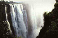 闪烁,它能上升到305米的高度。 1855年11月,苏格兰传教士和探险家戴维·利文斯敦成为第一个到达维多利亚瀑布的欧洲人。他初次听到关于瀑布的事是在四年之前,当时他和威廉姆·科顿·奥斯威尔抵达赞比西河岸以西129公里处。然后,在1853年与1856年之间,利文斯敦与一批欧洲人一起首次横穿非洲。利文斯敦希望非洲中部能向基督教传教士们开放,从非洲南部向北旅行经过贝专纳(现在的博茨瓦纳),到达赞比西河。然后,他向西到安哥拉的罗安达沿海。考虑到这条线路进入内陆太困难,他又调头东向,大致沿着赞比西河前行,1856年5月到达莫桑比克沿海的克利马内。奇怪的是,探险家们并没有因发现了维多利亚瀑布而兴高采烈,尽管他后来对此事有“如此动人的景色一定会被飞行中的天使所注意”这样的描述。对利文斯敦而言,这瀑布实质上就是一垛长1676米、下冲107米的水墙,也是基督教传教士们试图到达内陆土著村落的实际障碍。 对他而言,旅行的重点是发现瀑布以东的巴托卡高原。如果赞比西河被证实是可全线通航的话(它不能通航),在他看来,这一地方可作为潜在的居民点。尽管他以感觉有所“进展”的方式表达对发现瀑布的失望,但利文斯敦还是承认瀑布是如此壮观,以致只能以英国女皇维多利亚的名字命名。 瀑布只是一条壮观的河道的起点,因为水雾缭绕的河流在其通过一窄狭的峡谷途中立刻变得波涛汹涌。峡谷来回曲折72公里,这些急转弯是由岩石的断层引起的,几千年来,岩石一直受到水力的侵蚀。赞比西河逶迤穿过由一层层的砂岩和玄武岩构成的高原,而断层形成的地方正是这些不同岩石的交汇点。南非的瀑布在南非,奥兰治河在辟通花岗岩峡谷之前,在奥拉皮斯瀑布处跃过高原边缘,瀑布跌下146米。花岗岩是最坚硬的岩石之一,很难想象能任凭这水力侵蚀出这样的峡谷。干季的奥兰治河并不比溪流大多少,但是,春雨引起河水猛涨。该瀑布被贴切地称为奥拉皮斯,这是一个源自霍顿督语的专门名词,意为“有巨响的地方”。 尽管扎伊尔的洛福伊瀑布有335米的落差,任何时候都能给人深刻的印象,但它也随季节而变化。 非洲以有图盖拉瀑布而自豪,它是非洲最高的瀑布。实际上它是由5个小瀑布组成的瀑布系列,河水令人惊奇地陡降945米。 莱索引托的马莱楚尼亚瀑布在冬季结冰,外形怪异的冰柱唯有宁静方能相配。