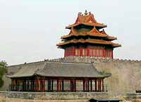 上罕见的。它标志着我们祖国悠久的文化传统,显示着五百多年前匠师们在建筑上的卓越成就。 引人注目的三大殿 故宫里最吸引人的建筑是三座大殿:太和殿、中和殿和保和殿。它们 都建在汉白玉砌成的8米高的台基上,远望犹如神话中的琼宫仙阙。第一 座大殿太和殿是最富丽堂皇的建筑,俗称“金銮殿”,是皇帝举行大典的 地方,殿高28米,东西63米,南北35米,有直径达1米的大柱92根,其中6 根围绕御座的是沥粉金漆的蟠龙柱。御座设在殿内高2米的台上,前有造型 美观的仙鹤、炉、鼎,后面有精雕细刻的围屏。整个大殿装饰得金碧辉煌, 庄严绚丽。中和殿是皇帝去太和殿举行大典前稍事休息和演习礼仪的地方。 保和殿是每年除夕皇帝赐宴外藩王公的场所。 富有生活气的内廷 故宫建筑的后半部叫内廷,以乾清宫、交泰殿、坤宁宫为中心,东西 两翼有东六宫和西六宫,是皇帝平日办事和他的后妃居住生活的地方。后 半部在建筑风格上同于前半部。前半部建筑形象是严肃、庄严、壮丽、雄 伟,以象征皇帝的至高无上。后半部内廷则富有生活气息,建筑多是自成 院落,有花园、书斋、馆榭、山石等。在坤宁宫北面的是御花园。御花园 里有高耸的松柏、珍贵的花木、山石和亭阁。名为万春亭和千秋亭的两座 亭子,可以说是目前保存的古亭中最华丽的了。 收藏文物100万件 游览故宫,一是欣赏丰富多彩的建筑艺术;二是观赏陈列于室内的珍 贵的文物。故宫博物院藏有大量珍贵文物,据统计总共达1052653件之多, 统称有文物100万件,占全国文物总数的1/6,其中有很多是绝无仅有的国 宝。在几个宫殿中设立了历代艺术馆、珍宝馆、钟表馆等,爱好艺术的人 在这些无与伦比的艺术品前,往往久久不忍离去。设在故宫东路的珍宝馆, 展出各种奇珍异宝。如一套清代金银珠云龙纹甲胄,通身缠绕着16条龙,形 状生动,穿插于云朵之间。甲胄是用约60万个小钢片连结起来的,每个钢 片厚约1毫米,长4毫米,宽1.5毫米,钻上小孔,以便穿线连结。据说,为 制造这套甲胄,共用了4万多个工时。 旅游服务 游览故宫,可以从天安门进,也可以由后门----神武门进。进入天安 门,穿过一片青砖铺地的广场,便到达紫禁城的正门----午门。这里城墙 高大,城门楼巍峨壮观,给人以无比威严的感觉,使站在这里的人自己感 到渺小这是古代统治者利用建筑艺术来为增强其帝王威慑力量服务的一个 最突出的例子。穿过午门,又是一个大广场,广场上有一金水桥。过桥经 太和门便是雄伟的太和殿。从高处看,金水桥和流经广场的那条御河,其 形状恰像一把巨大的弓。经太和殿、中和殿、保和殿,穿过乾清门,便进 入内廷,内廷分中路、东路和西路三条路线。如果是半日游,这三条路线 只能游一条,一般可走中路。走中路可看皇帝的卧室(乾清宫),放置皇帝印玺的地方(交泰殿),皇帝结婚的新房(坤宁宫),嫔妃所住的地方(其中 有的已辟为展厅)和御花园。一般来说,用半天时间游故宫,比较吃力。 以安排一日游为佳。如有时间,又想看得细些,则可安排二日游