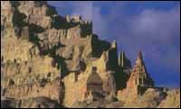 古格王国遗址在阿里扎达县札不让区象泉河畔的一座土山上,占地约18万平方米,是全国第一批重点文物保护单位之一。整个遗址建筑共有房屋洞窟300余处、佛塔(高10余米)3座、寺庙4座、殿堂2间及地下暗道2条,分上、中、下三层,依次为王宫、寺庙和民居。外围建有城墙,四角设有碉楼。在其红庙、白庙及轮回庙的雕刻造像及壁画中不乏精品。 古格王国是在公元十世纪前后,由吐蕃王朝末代赞普朗达玛的重孙吉德尼玛衮在王朝崩溃后,率领亲随逃往阿里建立起来的。十世纪中叶至十七世纪初,古格王国雄踞西藏西部,弘扬佛教,抵御外侮,在西藏吐蕃王朝以后的历史舞台上扮演了重要的角色。曾经有过七百年灿烂的文明史的古格王朝,它的消逝至今仍是个谜。据说1630年,与古格同宗的西部邻族拉达克人发动了入侵战争,古格王国就此灭亡。 近十数年间于古格遗址周围不断发掘出的造像、雕刻及壁画等是这个神秘王朝留给今人的宝贵财富。古格雕塑多 < 1 > < 2 >