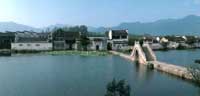 宏村位于黟县城西北角,距屯溪65公里,距黟县县城11公里。该村始建于北宋,距今已近千年历史,原为汪姓聚居之地。古宏村人独出机抒开"仿生学"之先河,规划并建造了堪称"中华一绝"的牛形村落和人工水系,统看全村,就象一只昂首奋蹄的大水牛,成为当今"建筑史上一大奇观"。全村现保存完好的明清古民居有140余幢。民间故宫"承志堂"富丽堂皇,可谓皖南古民居之最。村内鳞次栉比的层楼叠院与旖旎的湖光山色交相辉映,动静相宜,空灵蕴藉,处处是景,步步入画。从村外自然环境到村内的水系、街道、建筑,甚至室内布置都完整地保存着古村落的原始状态,没有丝毫现代文明的迹象。造型独特并拥有绝妙田园风光的宏村被誉为"中国画里乡村"。