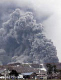 米高的巨浪席卷东地中海岛屿和海岸,米诺斯文明中心以及130公里外的克里特岛瞬间毁灭。 公元79年意大利的维苏威火山,它在瞬间将附近的庞贝、斯特比雅、格尔库拉鲁姆、奥普隆基四座繁荣一时的古城堡埋葬在火山喷发物下。这些都给人类文明留下了永远的遗憾。也使人类认识到,我们所谓的辉煌文明在大自然的威力面前是那么的苍白无力,而火山爆发带来的灾难又是那么的不可抗拒。 火山爆发除了直接毁灭一切,还引发一系列的灾害——火灾、海啸、泥石流、洪水、形成随时可能决口火山口湖,火山灰非常细小,随风飘飞到遥远的地方或上升到高空,长期弥漫,造成能见度降低,导致空难、交通事故,甚至使气候变异出现“冷夏”。1783年日本浅间山火山大爆发,使日本出现“冷夏”,甚至在东北部出现冻害。火山的喷发物:二氧化碳、二氧化硫、氢、氯、硫化氢等还会污染空气,形成酸雨,产生温室效应。 火山燃起大火:1977年1月7日非洲尼拉贡戈火山爆发,烧毁扎伊尔、卢旺达两国430平方公里的热带雨林。 火山引爆海啸:1883年8月27日印度尼西亚厄他海峡中的喀拉喀托火山爆发,引发人类有史以来最大的海啸,掀起高达三四十米的狂浪,吞没这一海域全部船只,爪哇岛、苏门答腊岛沿岸的房屋、车辆、人畜全部被卷入波涛汹涌的大海。仅印度尼西亚就有3.6万人在这次海啸中丧生,经济损失无法估量。 火山引起泥石流:1943年2月墨西哥帕利科那火山爆发,附近山坡覆盖了六七十厘米厚的火山灰。当飓风暴雨席卷墨西哥时,形成泥石流,瞬间埋葬了山下三个村庄和数十名村民,600多平方公里农田被毁。 火山引发洪水:1985年11月13日哥伦比亚托利马省位于5000米高原的路易斯火山爆发,将上千年来的积雪瞬间融化,山洪飞泻,洪水波及3万多平方公里,使2.5万人丧生,13万人无家可归,15万畜生死亡,200多平方公里的农田、果园被毁,直接经济损失超过50亿美金。
