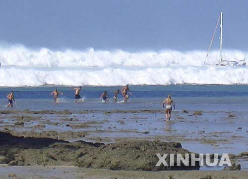 2004年12月26日印度洋海啸发生时的巨浪扑向几名外国游客