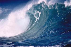 海啸时掀起的狂涛骇浪,高度可达十多米至几十米不等,形成“水墙”。另外,海啸波长很大,可以传播几千公里而能量损失很小。由于以上原因,如果海啸到达岸边,“水墙”就会冲上陆地,对人类生命和财产造成严重威胁。