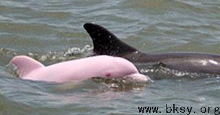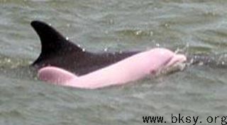 当时,一艘出租的渔船正在洛杉矶查尔斯湖南边的卡尔卡苏湖作业,湖面上突然出现几只海豚,令船上的人惊讶不已的是,其中一只海豚的皮肤颜色竟然是粉色!这只海豚有着一双微红的眼睛,粉红色