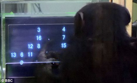黑猩猩Ayumu能在眨眼功夫记住一组数字的位置和顺序。 日本京都大学的黑猩猩Ayumu只用60毫秒就能解决数字难题。