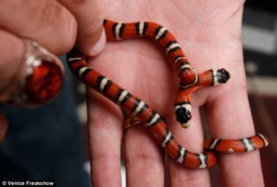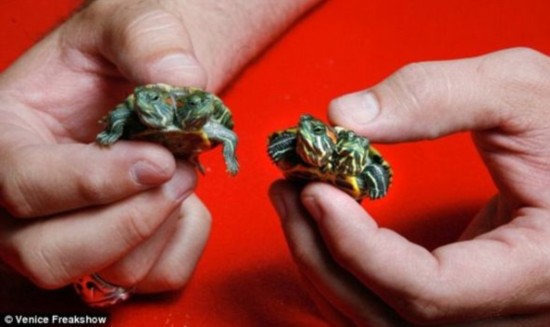 北京时间4月18日消息,据国外媒体报道,美国格莱美奖得主托德-雷酷爱收藏双头动物,其中包括双头龟、双头山羊、双头松狮蜥以及双头猪鼻蛇。目前,托德喂养的双头动物已多达22只,也因此创造了一项吉尼斯世界纪录,成为拥有双头动物数量最多的人。