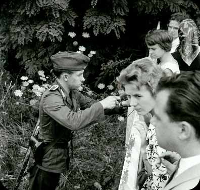 西德市民进入东德是很困难的,1965年,部分西德市民等待进入另一侧。