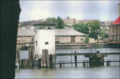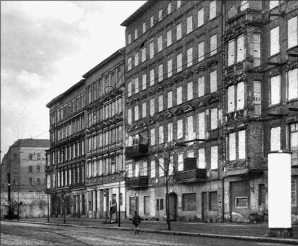 街道在西方, 楼房属于东方。楼房上的窗口就是著名的‘死窗户“,被砌死以阻止人们逃跑到西柏林。(1961)