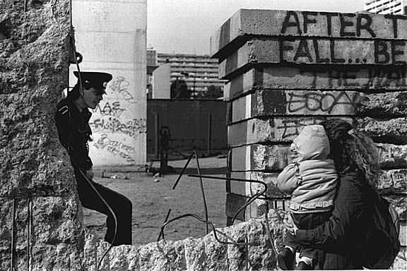 1989年,柏林墙倒塌前夕,柏林墙虽然已经有些缺口,但东德士兵还在坚守着岗位