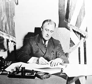 罗斯福的“新政”处方先从整顿金融入手。在就职后的第三天,即1933年3月6日,罗斯福宣布全国银行“休假”,这是他所采取的重建银行和经济结构的第一步。3月9日,国会通过《紧急银行法令》,对银行采取个别审查、颁发许可证制度,对有偿付能力的银行,允许尽快复业。13日至15日,全国绝大多数银行经过财政部审核,在政府监督下,分批陆续恢复营业。罗斯福对惊魂不定的美国人民说:“我向你们保证,把你们的钱存入重新开业的银行比藏在床褥下更为保险。”6月16日,国会通过了《1933年银行法》,建立由联邦承担责任的联邦储备体系。由于采取了这些措施,银行信用很快恢复,银行存款在不到一年的时间里增加了近20亿美元!