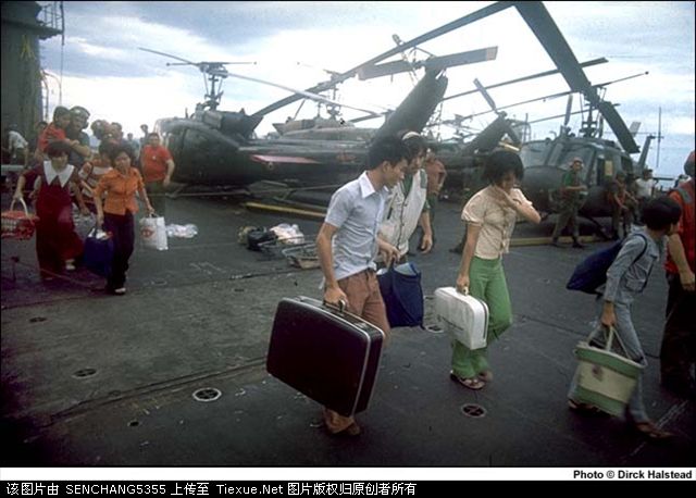 问题是怎么逃,那可就热闹了,早有准备的美军启动“顺风行动”,派出中途岛号航空母舰,以直升机接运大使馆人员与越籍雇员渡海逃难,南越海军的舰艇,空军的飞机纷纷带上家眷逃亡泰国,菲律宾甚至马来西亚。