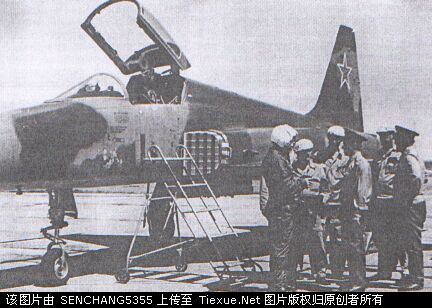 苏联军官在检查缴获的美军F-5虎式单座喷气式战斗机