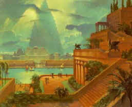 一般相信空中花园是由Nebuchadnezzar王(公元前604 - 公元前562)为了安慰患上思乡病的王妃安美依迪丝(Amyitis),仿照王妃在山上的故乡而兴建了空中花园。 空中花园在公元前600年建成,是一个四角椎体的建设,由沥青及砖块建成的建筑物以拱顶石柱支撑着,台阶种有全年翠绿的树木,河水从空中花园旁边的人工河流下来,远看就仿似一座小山丘。