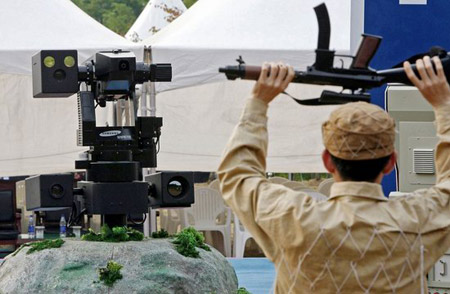 韩国联合通讯社援引韩国产业资源部的消息称,这种由三星集团Techwin公司牵头研制的机器人卫兵能侦测、警告并以压制性火力对付入侵者。韩国政府2003年12月投资98亿韩元(约合10.3亿美元)开始这项为期3年的研制计划。