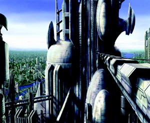山地城市:为了充分利用土地,傍山的城市向山上发展,以巨型电梯为交通工具。