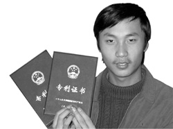 刘东方是江苏徐州金山桥寄宿学校高二(7)班的学生,瘦瘦高高的个子,看上去有些貌不惊人,可是,他已是“非直角书本”和“新颖台历”两项国家专利的拥有者,是一位名副其实的小发明家!