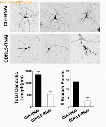 利用RNA干扰技术降低细胞内CDKL5蛋白的表达抑制了培养皮层神经元的树突发育