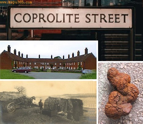 COPROLITESTREET(粪化石大街)并不是英国最享有盛名的地方,但在英国历史上,此处也书写了一个令人好奇的篇章——1849年粪化石热。19世纪40年代初,人们在英格兰萨福克郡的小山上发现大量粪化石。粪化石经过硫酸处理产生大量磷酸盐,后者被充当肥料。绝大多数精炼工作在伊普斯维奇市进行,也就是粪化石大街的所在地。