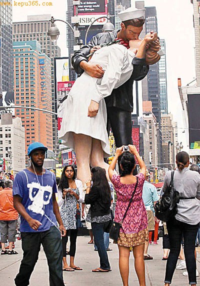 科学网讯 65年前的今天,日本宣布投降,美国纽约时代广场一片欢腾,一名水兵和不相识的护士扭腰热吻,被杂志记者拍下,成为经典照片。时代广场昨在原址附近竖立高8米的巨型雕像,重现经典热吻。