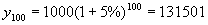 为n年后本金与利息的总和。在第一个100年末富兰克林的财产应增加到y;