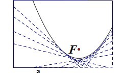 中学生都应该知道抛物线的概念,除了我们熟知的二次函数,更重要就是他是我们的圆锥曲线。那就是到定直线的距离与到定点的距离相等的点的轨迹。用尺规作图无法做出抛物线的,但是今天却让大家看到,我们可以用折纸法来画出抛物线。 折纸法画抛物线方法 1:取一张矩形纸,以矩形的一边a为抛物线准线,在矩形内部取一点F做为抛物线焦点。 2:开始折纸片,使得a边正好通过F点。我们可以知道,这种折法是有很多种的,一种一种来就行了