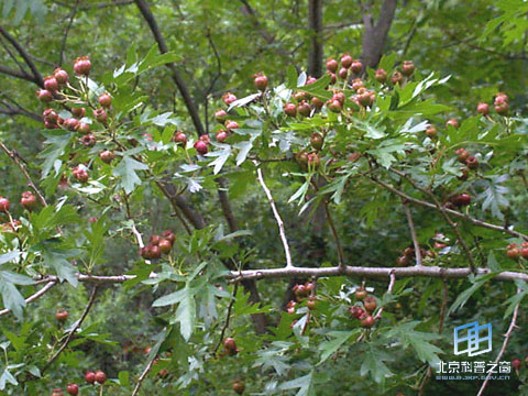 山楂为落叶小乔木,树冠宽卵形,分枝多而且枝上有小刺;叶三角状卵形,两侧各有3—5羽状深裂片,花白色。果实近球形,熟时呈红色。它有一个变种叫红果(var.major N.E.Br.),是重要果树,叶、花及果都比原种大,红果皮上白色气孔斑点极明显,枝上没有刺.花期5—6月,果红9—10月。