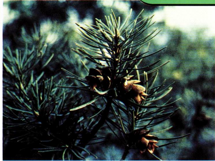形态特征 松科银杉属常绿乔木植物,高达24米。胸径达40厘米。树干通直,树皮暗灰色,裂成不规则的薄片。叶螺旋状排列,辐射状散生,线形,长4-6厘米,宽2.5-3毫米,下面沿中脉两侧有明显的白色气孔带,边缘微反卷。雌雄同株,雄球花常单生于2年生枝叶腋;雌球花生当年生枝叶腋。球果两年成熟,卵圆形,长3-5厘米,直径1.5-3厘米,熟时淡褐色或栗褐色。种于倒卵圆形,长5-6毫米。