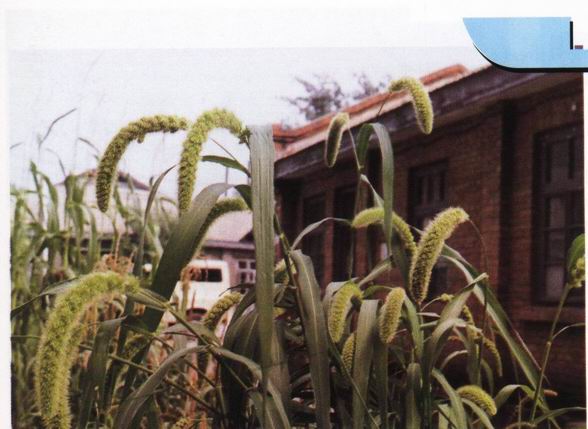 形态特征:禾本科狗尾草属一年生草本植物,高约1米有时可达2米。秆直立,光滑。叶片披针形或条状披针形,长15-28厘米,宽1-3厘米。6-8月开花,穗状圆形花序紧密而下垂,长10-25厘米,有时可长至40厘米,直径2-3厘米,穗轴密被柔毛。颖果即谷子,种仁即小米。