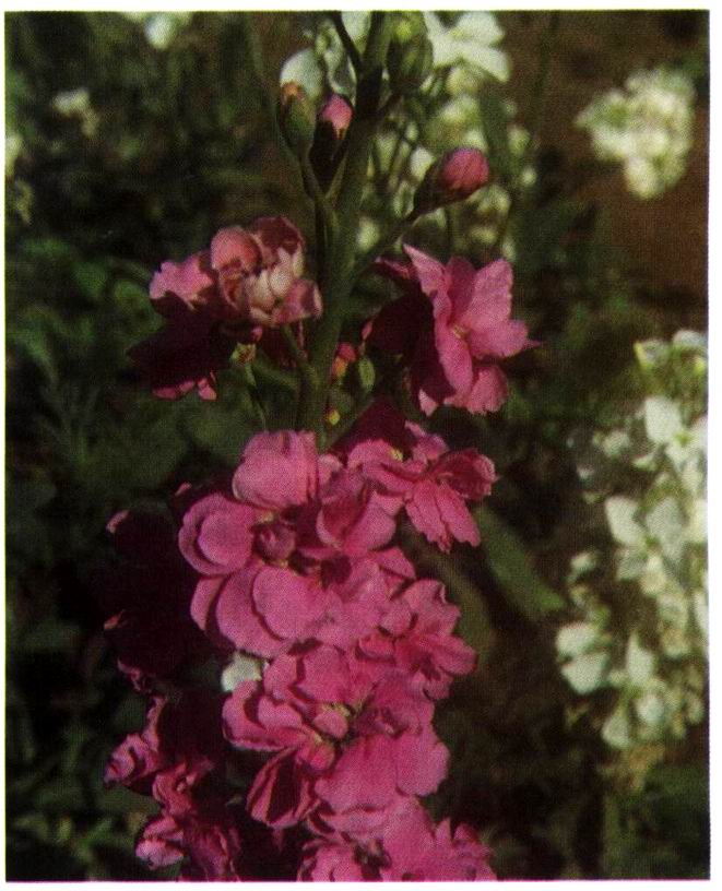 形态特征:十字花科紫罗兰属二年生草本植物,株高30-50厘米。茎基部木质化。全株密布灰色柔毛。叶倒披针形。总状花序腋生,花冠紫红色,具微香,花期4-5月。蒴果黄褐色,果期8-9月。