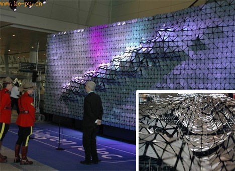 类似的还有名为耀斑(Flare)的动态建筑表面。它是由大量的通过气缸控制的金属面板组成,能够随着光线的改变而变换面板的角度,使得整个建筑表面像一幅黑白画一样忽明忽暗。如同上图电脑模拟所示,这种建筑表面能让你产生错觉,它仿佛具有生命,能够呼吸。看到这里,你觉得那些开车经过的司机会有怎样的反应呢?