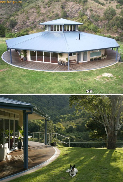 在传统房屋下加装旋转装置的构思并不局限于光彩夺目的大都市。上图就是位于澳洲温纳姆地区的一个很好的例子,这栋房子取名为Everingham Rotating House。你是否曾希望自己的房子能够随着阳光朝向的变化而转动?这栋房子的主人把这种想法付诸了实施。他们花费了10年的精力投资建成了这栋重达50吨的建筑。该建筑通过电子设备来控制旋转的速率,最高可达每小时160米,也就是每小时整整旋转两圈。