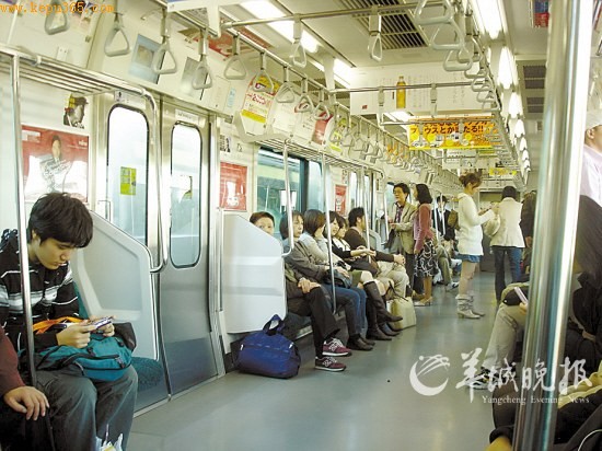 现在,在东京的地铁中,几乎看不到抢车门、抢座位的情形。相反,即使是在乘客很少、车厢内空空荡荡的时候,乘客也大都是安安静静地端坐在一个座位上,似乎身旁的座位上坐着隐形乘客。