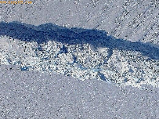 这幅照片于2011年11月拍摄,但直到2012年2月1日才对外公布。根据Terra卫星的观测,裂缝正快速增大。1个月前,裂缝长度为18英里(约合29公里)。松岛是一条巨大的“冰舌”,长30英里(约合48公里),从哈德逊山脉蜿蜒伸入阿蒙森海。松岛冰川的冰来自于西南极洲冰原,上一次大规模断裂发生在2001年。