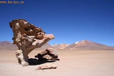 一个岩石结构被风沙侵蚀后形成独特的树状结构,这个“石树”位于玻利维亚高原上,玻利维亚高原是世界上最美丽的景点之一。